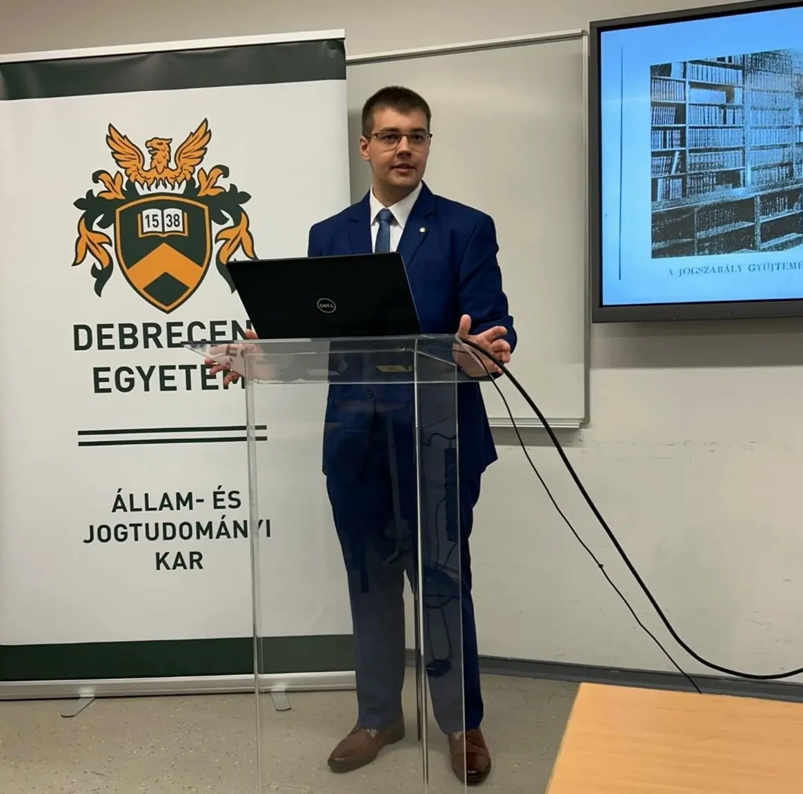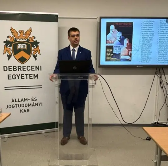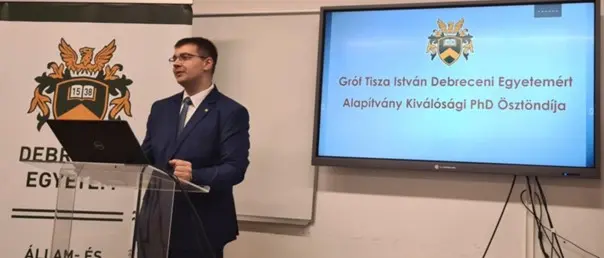 Az MTA Debreceni Területi Bizottság Jogi és Közgazdaságtudományi Szakbizottságának Jogi Munkabizottsága és a Debreceni Egyetem Állam- és Jogtudományi Kara szervezésében megrendezésre került a Gróf Tisza István Debreceni Egyetemért Alapítvány (GTIDEA) által díjazott oktatók, kutatók a DE ÁJK-n címmel tartott előadássorozat utolsó része. A rendezvényen Sallai Balázs a Marton Géza Állam- és Jogtudományi Doktori Iskola és a Jogtörténeti Tanszék doktorandusza tartott előadást aktuális kutatásairól „Tradíció helyett ráció” – a magyar közigazgatás racionalizálásának auktorai és tevékenységük (1920-1955) címmel. Ennek során szó esett a klasszikus történettudományi (levéltári) metódus és a hálózattudomány ötvözéséről a konkrét tudománytörténeti vizsgálódásokkal kapcsolatban. A tudományos előadást követően az esemény második felében a fiatal kutatók tudományos karriertervezésével kapcsolatos kihívásokról, a kutatási eredmények nemzetközi láthatóságának növeléséről és kutatásmódszertani kérdésekről esett szó egy interaktív prezentáció keretében. A beszélgetés során Sallai Balázs röviden ismertette a Gróf Tisza István Debreceni Egyetemért Alapítvány Kiválósági PhD Ösztöndíjat. Ennek során a résztvevők megismerhették az ösztöndíjprogram pályázati mechanizmusát, az azzal járó jogokat és kötelezettségeket, valamint azt, hogy az elismerés milyen más előnyökkel jár egy fiatal PhD-hallgató számára.