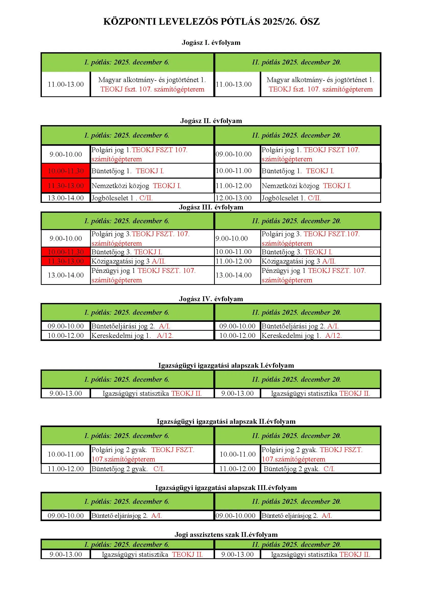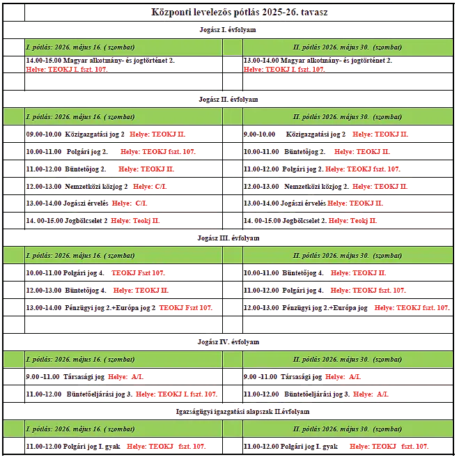 Központi levelezős pótlás | Állam- és Jogtudományi Kar